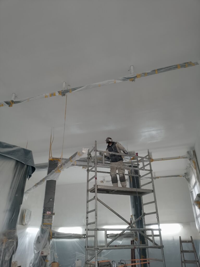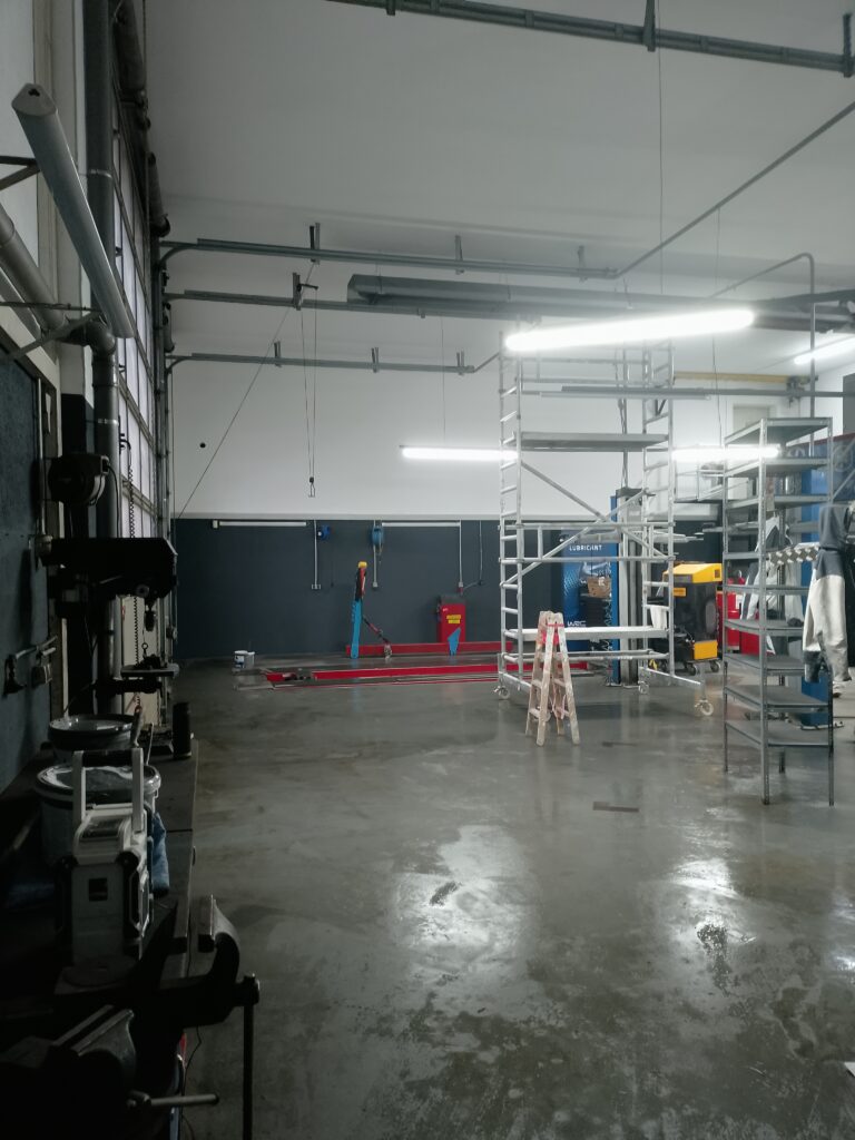 Werkstatt in Walhstedt mit Airless gespritzt und Sockel abgesetzt!