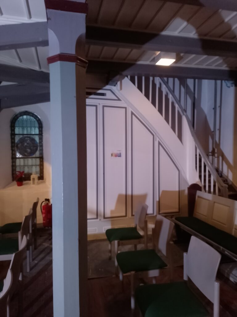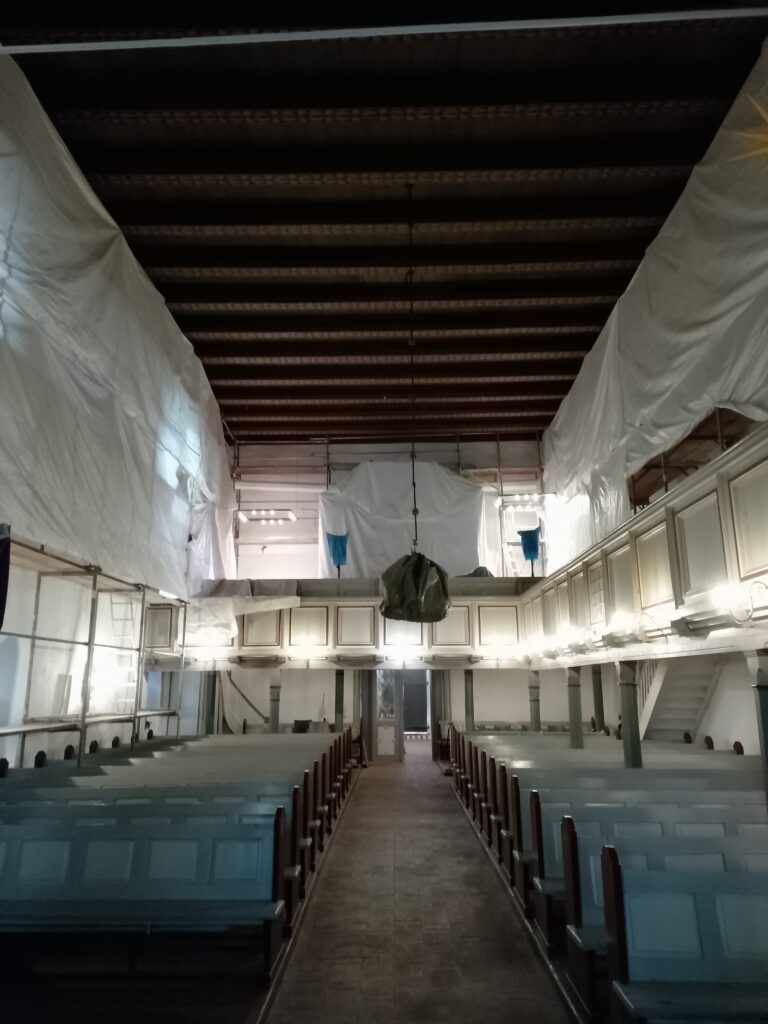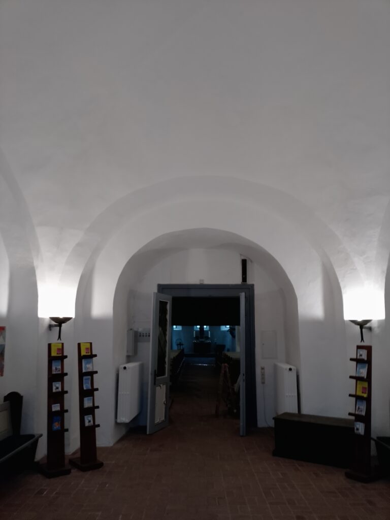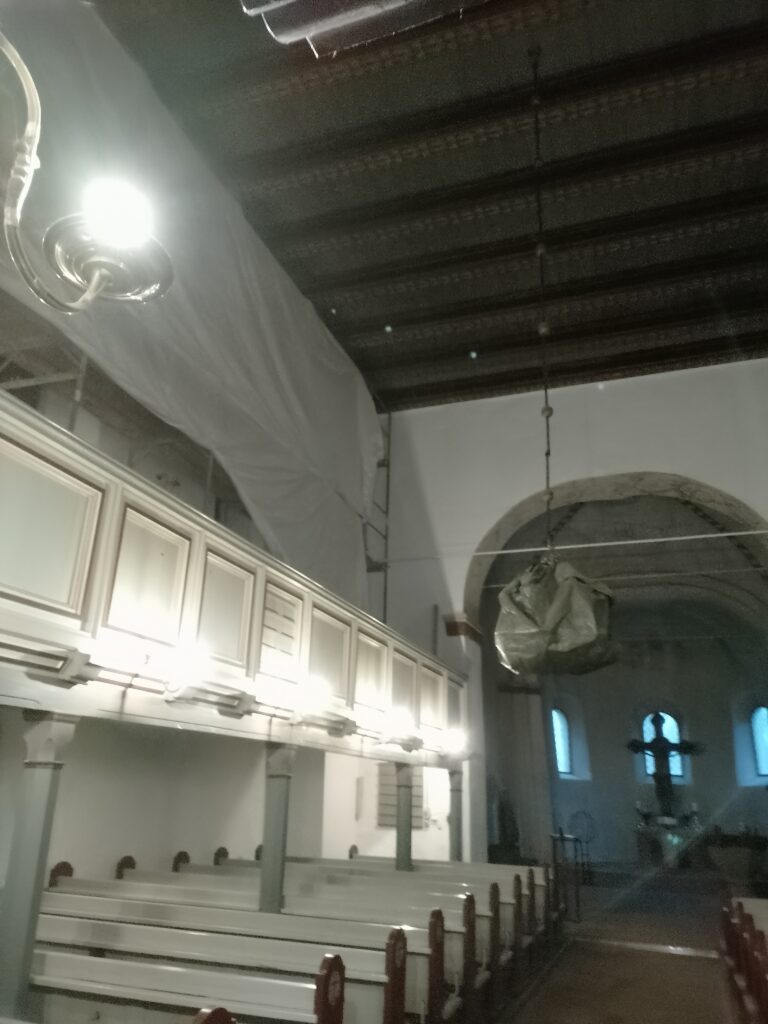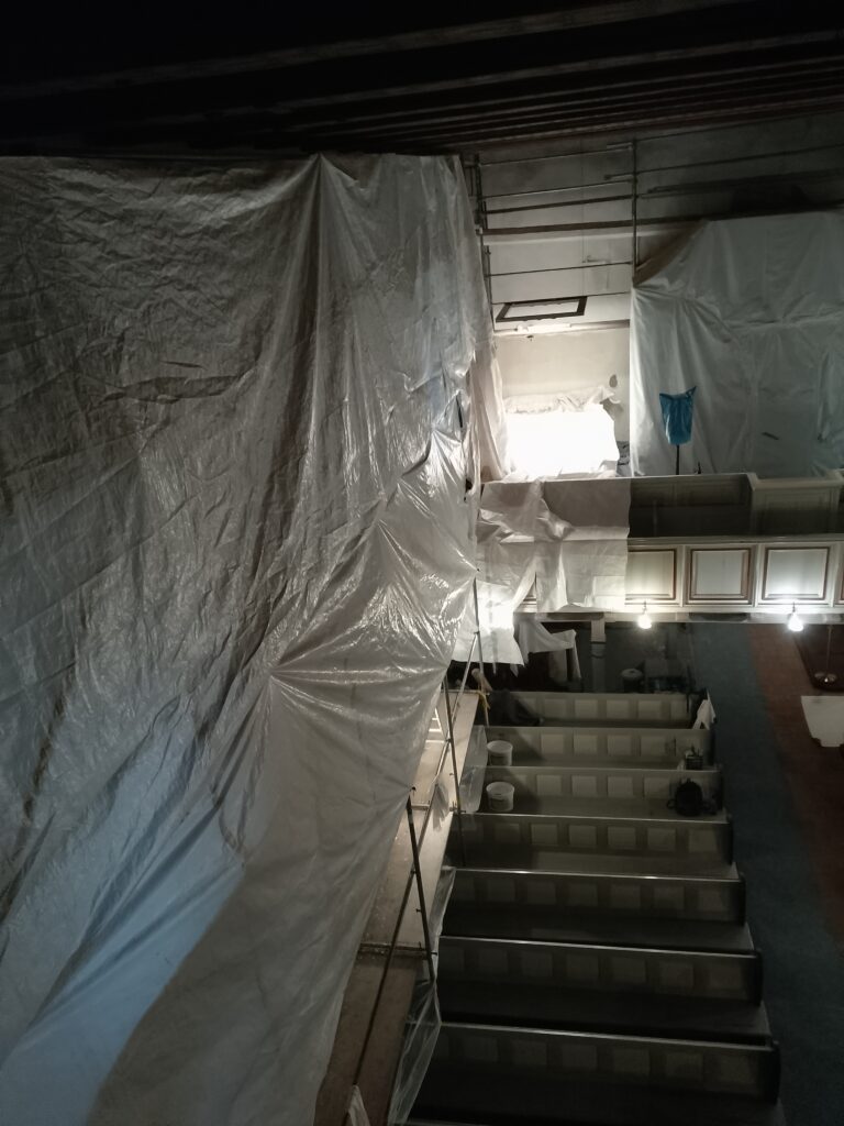 lose Schichten abgetragen & neu gekalkt (1000m²) und Lackierarbeiten (Türen & Treppe)